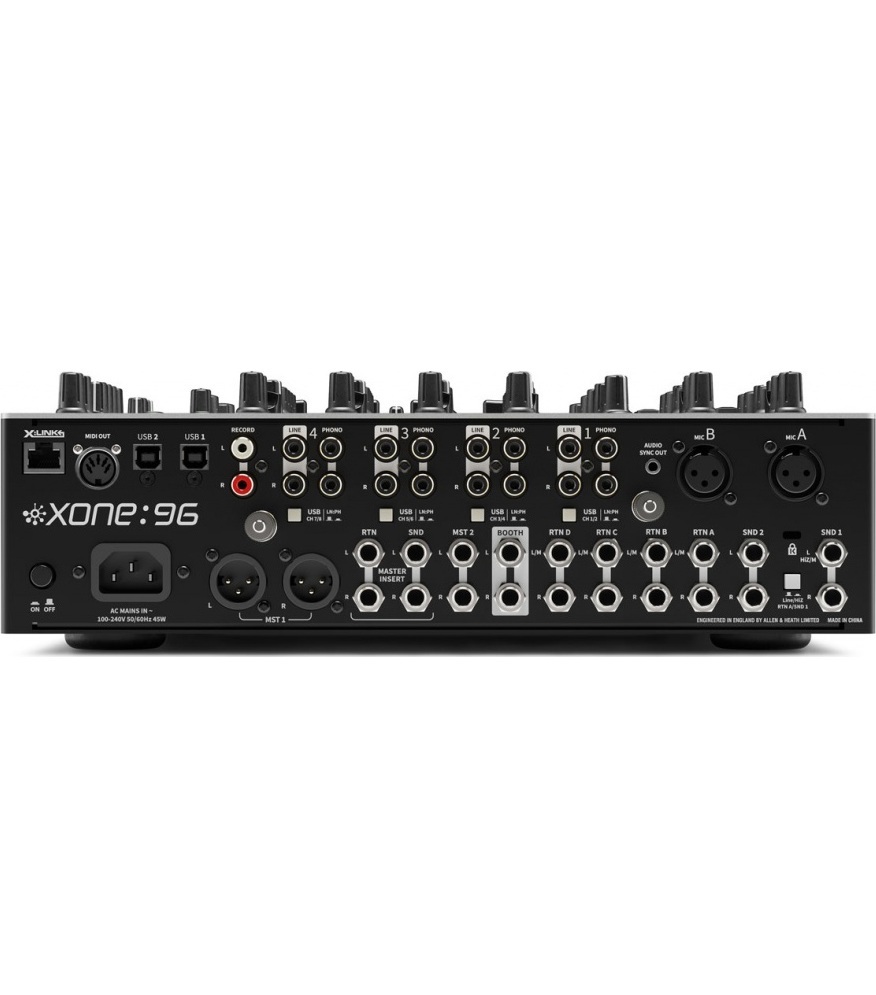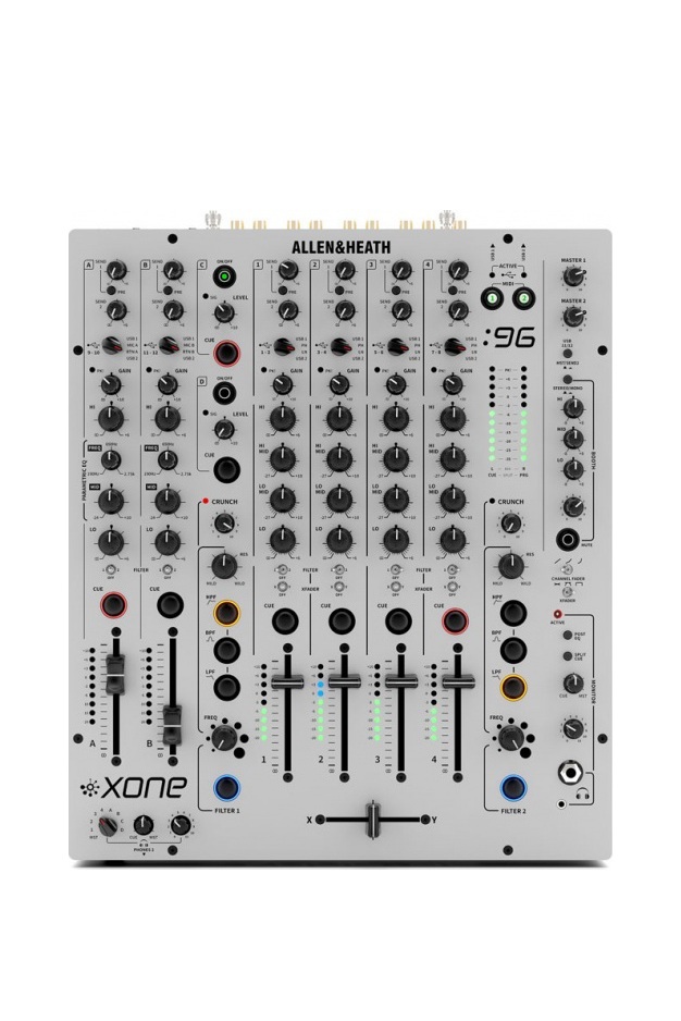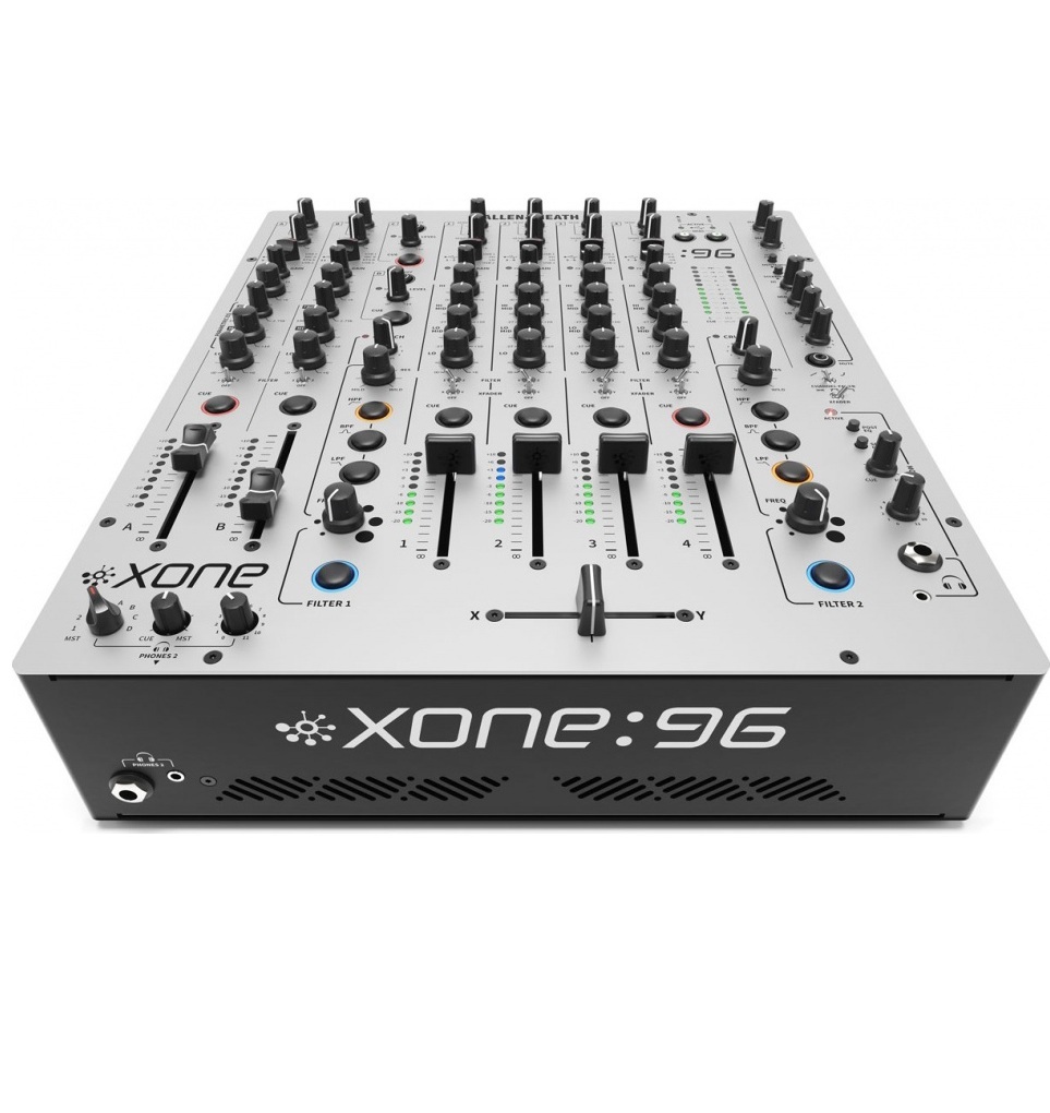 Allen & Heath Xone:96 - флагманский DJ-микшер линейки Xone, обновленная версия модели Xone:92. Устройство обладает классическим дизайном, имеет множество возможностей коммутации, полностью аналоговый тракт, а также два встроенных USB-аудиоинтерфейса, дающих возможность работать сразу двум диджеям. Микшер имеет полную совместимость с программой Traktor Scratch и работает с любыми виниловыми и CD-проигрывателями.